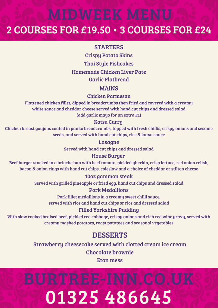 Please note, these special offer menus are not available on bank holidays or Valentine’s Day/Evening